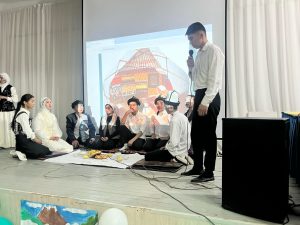 Учащиеся постарались передать атмосферу весеннего тепла, дружбы и единства народов. Зрители с восторгом встречали каждое выступление, а в зале царила праздничная и доброжелательная обстановка. Школьный холл и актовый зал были украшены в национальном стиле: яркие ткани, традиционные узоры, весенние цветы и праздничные плакаты создавали особое настроение.